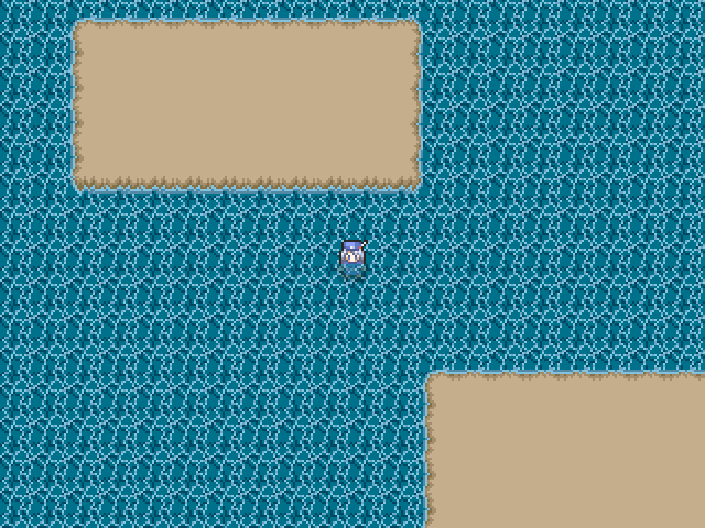 水地形は進入可能ということで、キャラの下半分を半透明にしてみた。
