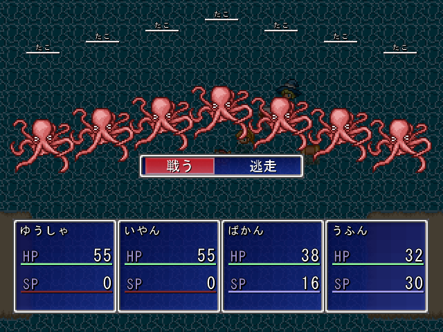 ウディタの基本戦闘になれている人には、物足りなく感じられるかもしれないなぁ。
