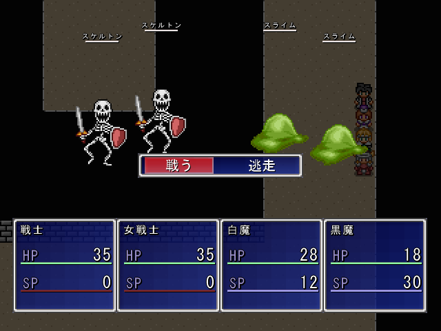 ウディタの基本戦闘になれている人には、物足りなく感じられるかもしれないなぁ。